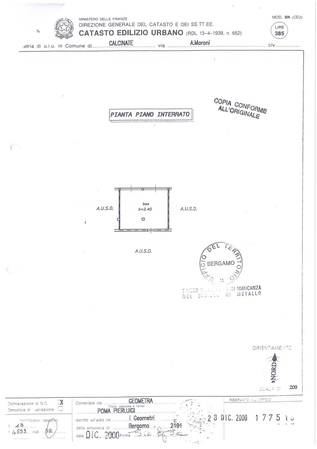 | Box/Garage - piano interrato | 37 Mq | 18 Mqc |